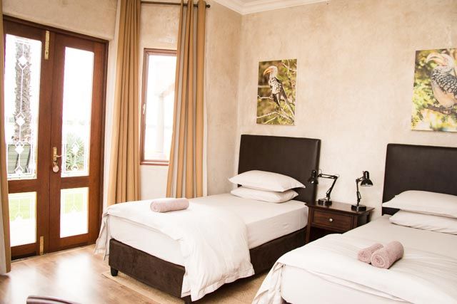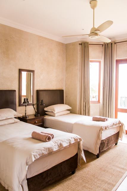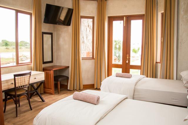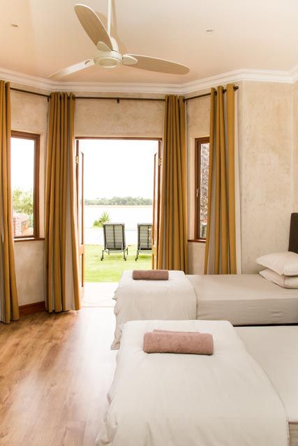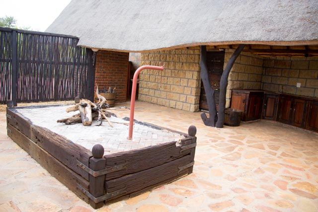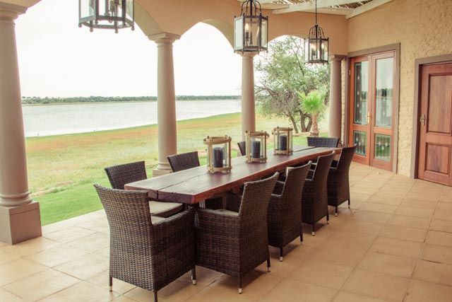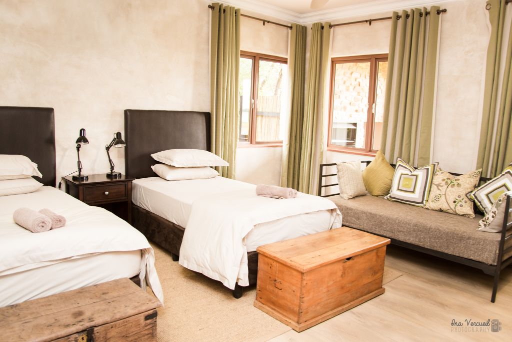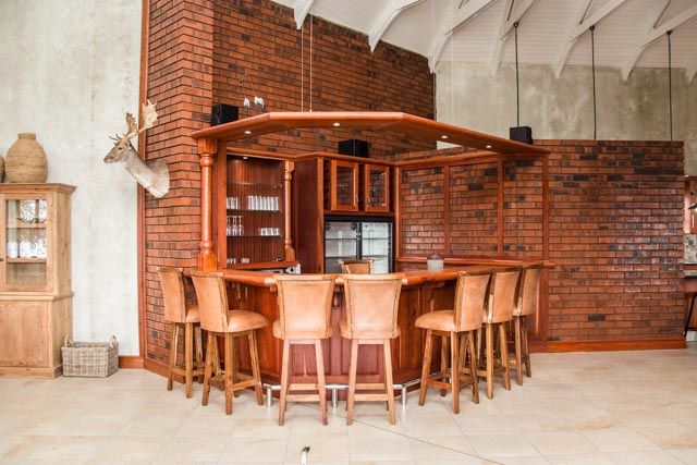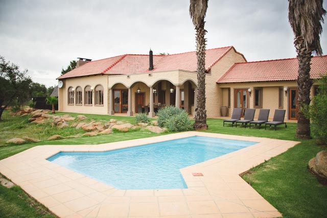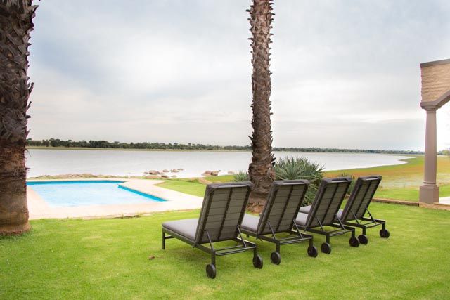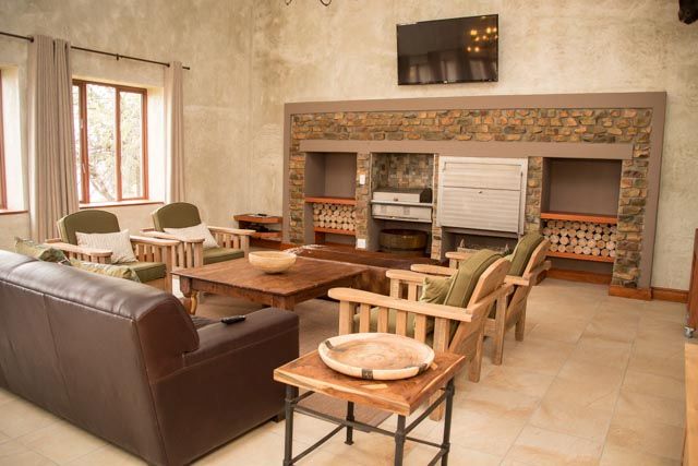 The self-catering lodge have a state of the art kitchen, dining, barbecue, and bar facilities. A swimming pool, surrounded by lush rolling lawn, overlooks an extensive natural dam. The lodge has four private bedrooms and sleeps a total of 10 guests.